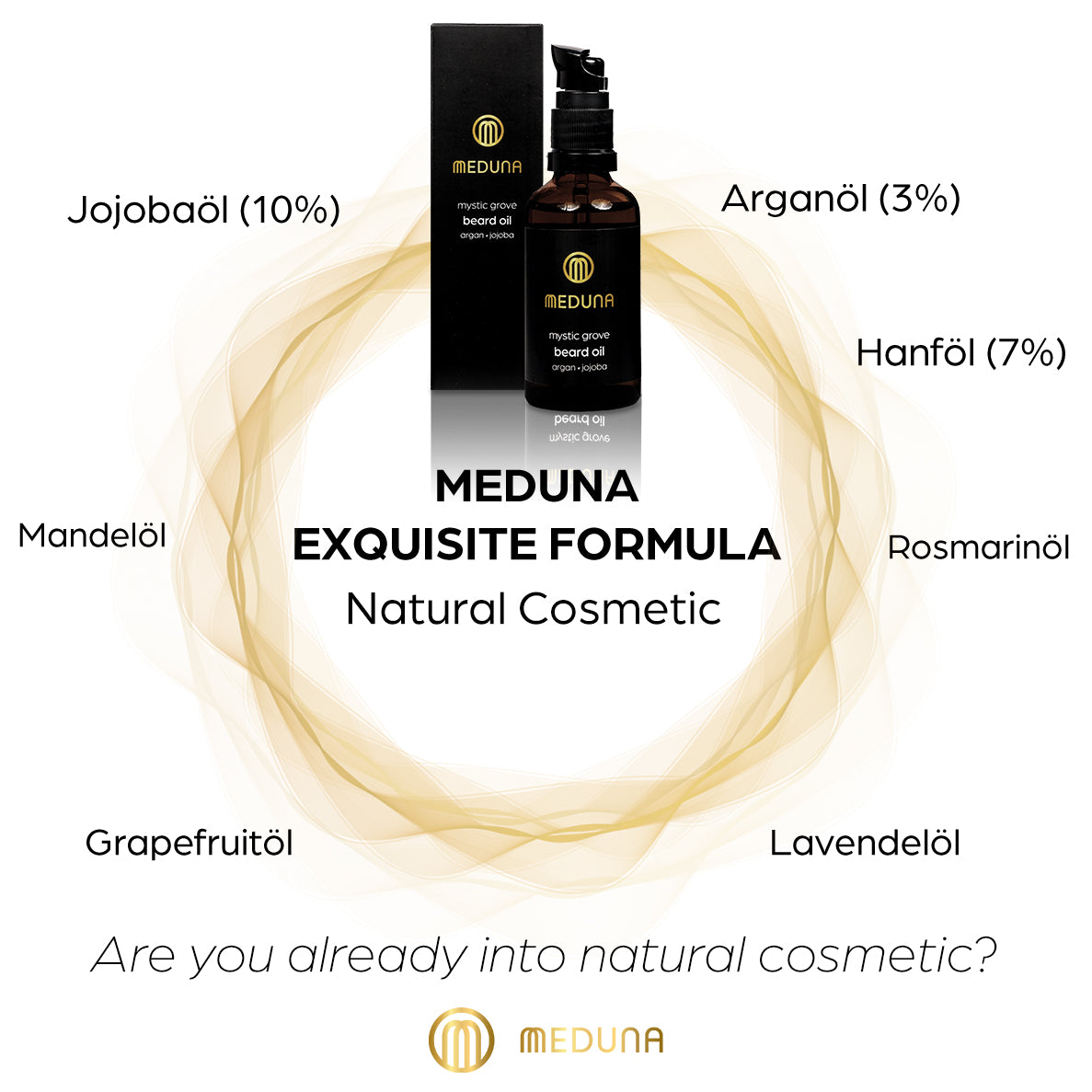 Unser Bartöl "Mystic Grove" vereint die hochwertigsten Rohstoffe wie Argan und Jojoba-Öl in entsprechender Dosierung.