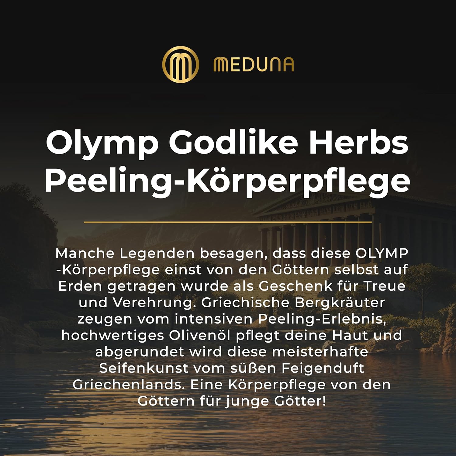 Unsere OLYMP Kรถrperpflege kommt mit einem auรŸergewรถhnlichen Peeling aus olympischen Bergkrรคutern daher. Auf diese Weise wird die Haut grรผndlich gereinigt.